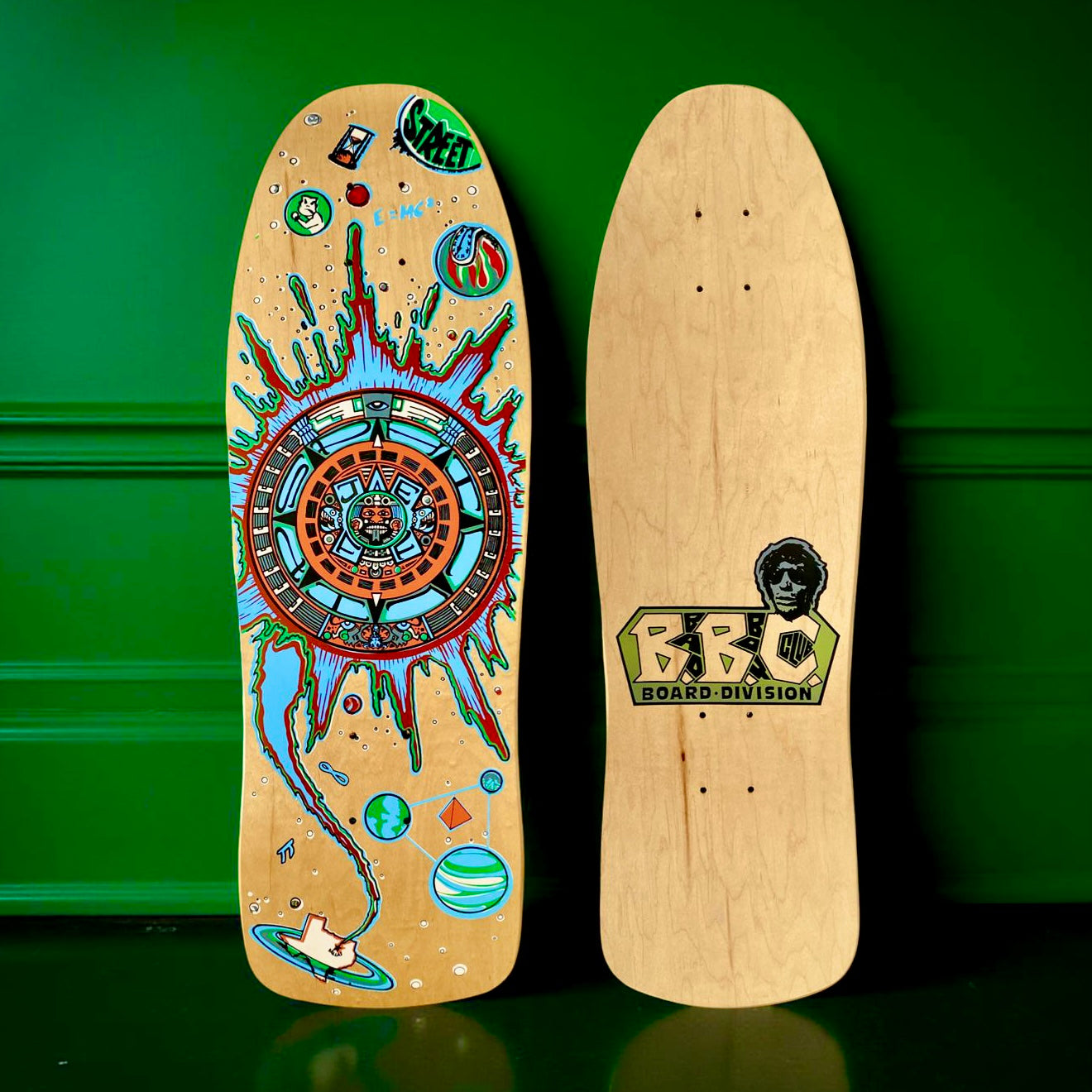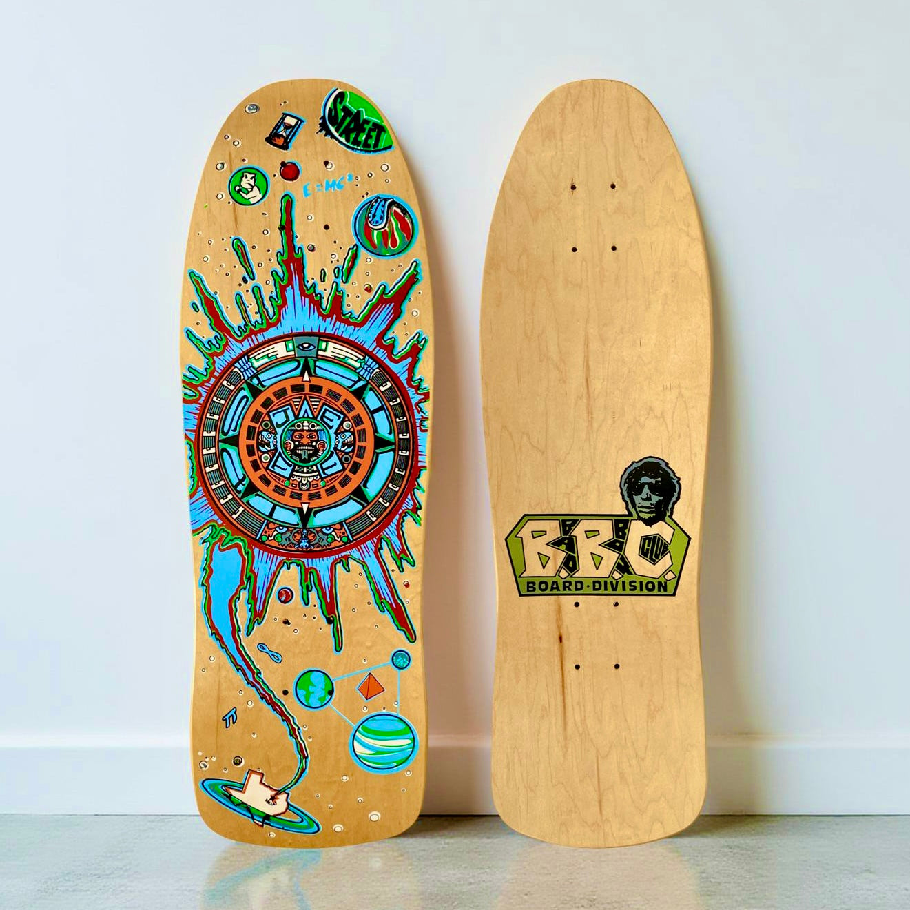 PLEASE NOTE: The pictures provided are original decks and/or computer mock-ups, and by their very nature are not identical to the final product.  Please refer to the info provided and ask questions if you are unsure.  Our reissue graphics are HAND SCREEN-PRINTED and decks are hand painted/stained - each and every one is slightly different. Colors, fades and unique errors or attributes in the graphics vary from one to the other, and the deck you receive may not look exactly like the picture provided. You are buying a deck color, not an exact graphic color. These are not heat transfer duplicates, they are each amazing, original, hand-made works of art. This is a fundraiser project and as such, there are no refunds.