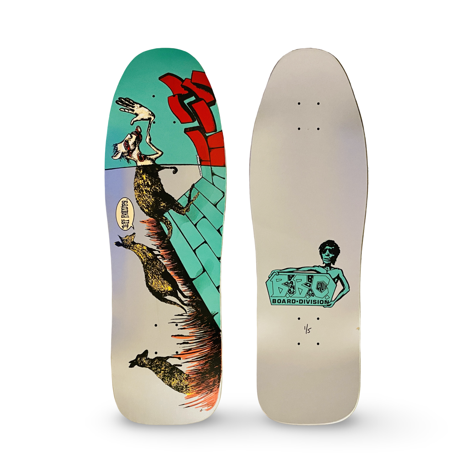 PLEASE NOTE: Our reissue graphics are HAND SCREEN-PRINTED and decks are hand painted/stained - each and every one is slightly different. Colors, fades and unique errors or attributes in the graphics vary from one to the other, and the deck you receive may not look exactly like the picture provided. You are buying a deck color, not an exact graphic color. These are not heat transfer duplicates, they are each amazing, original, hand-made works of art. This is a fundraiser project and as such, there are no refunds.