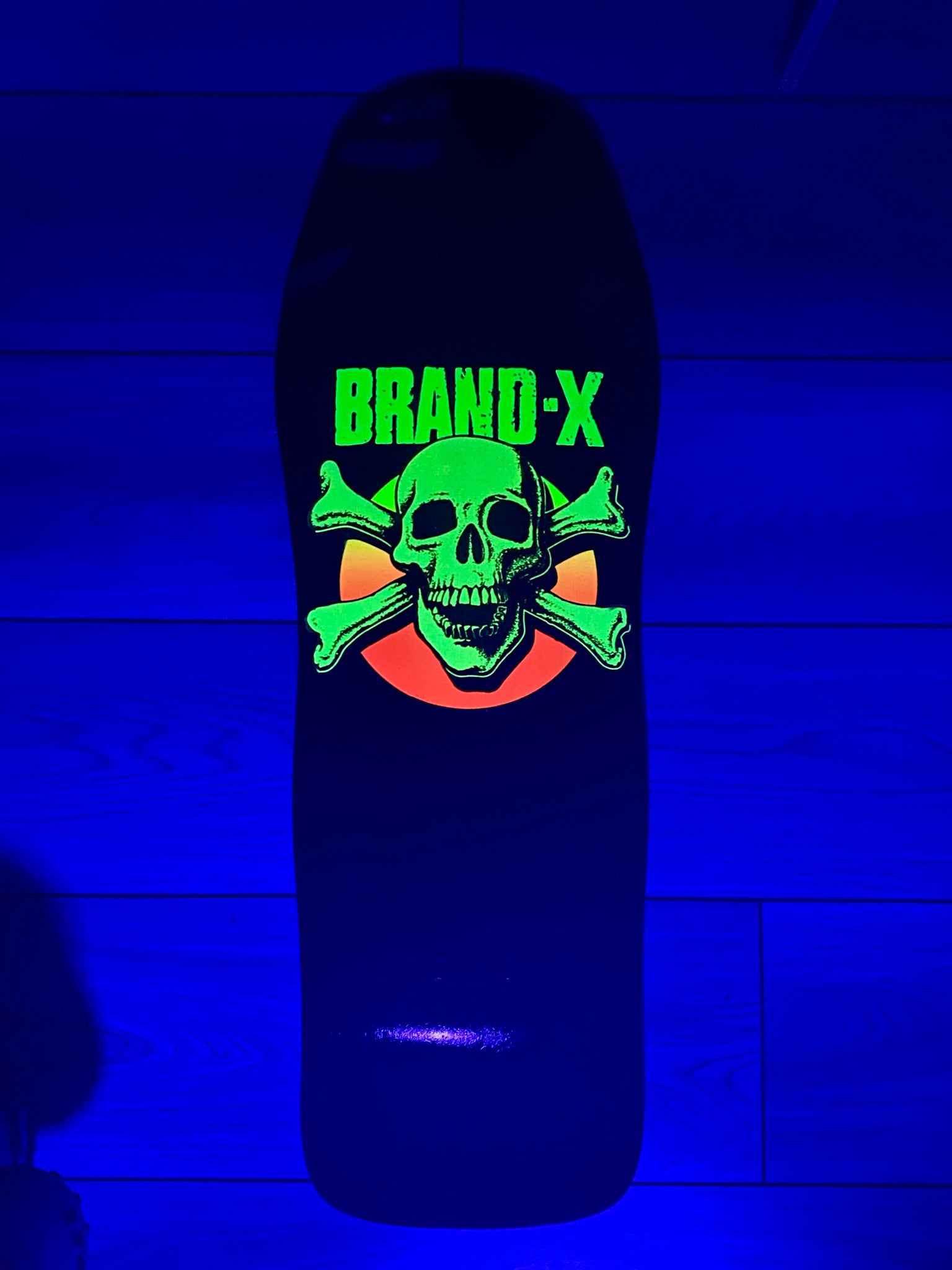 BRAND-X Knucklehead ultra limited FLOCKED, NEON/FLUORESCENT & GLOW-IN-DARK hand screen-printed graphics on our popular Goff shape with our new modern kickass concave